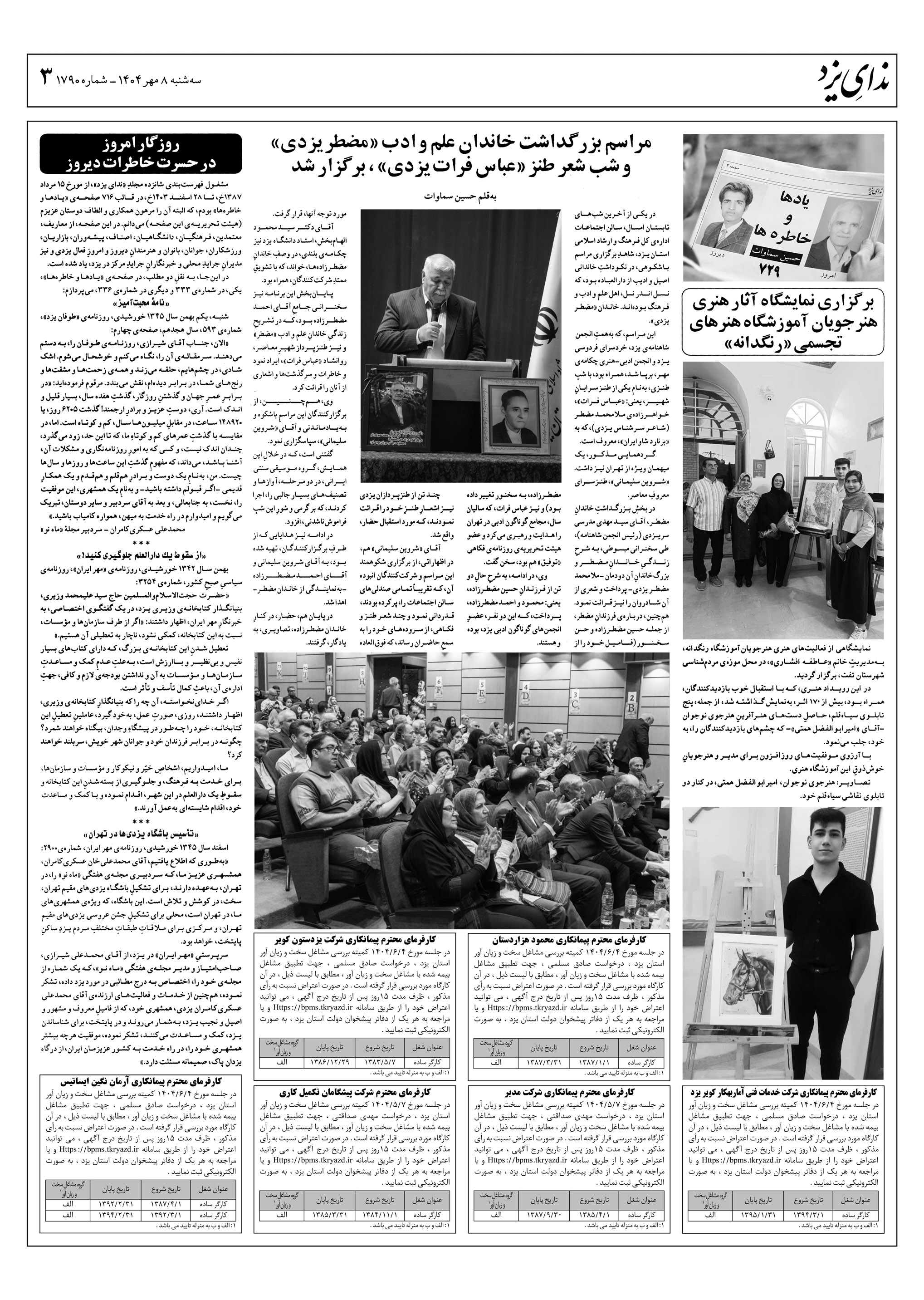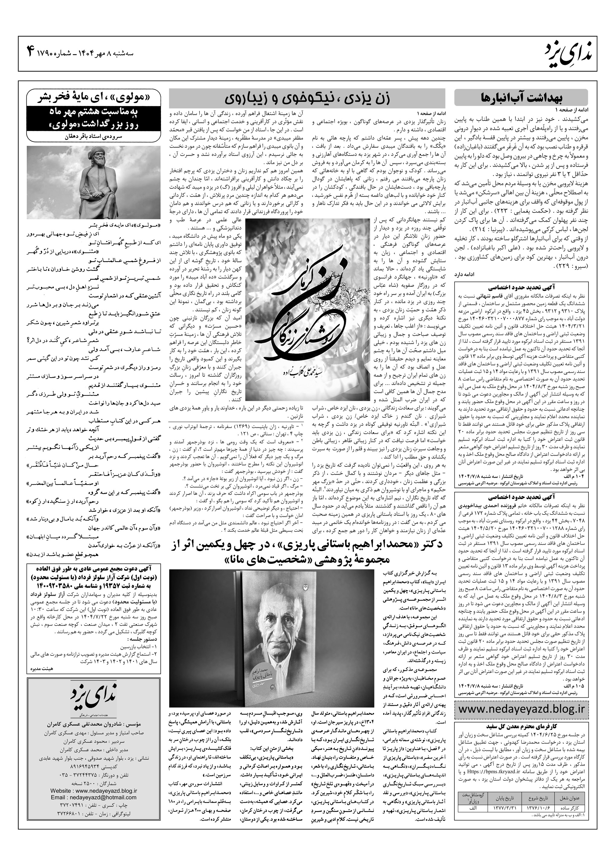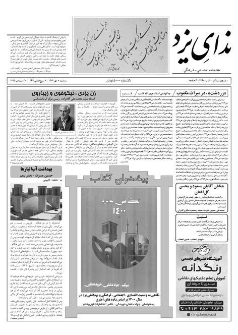 هفته نامه ندای یزد شماره 1790 مورخ سه شنبه هشتم مهر 1404